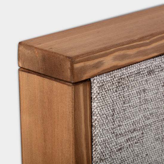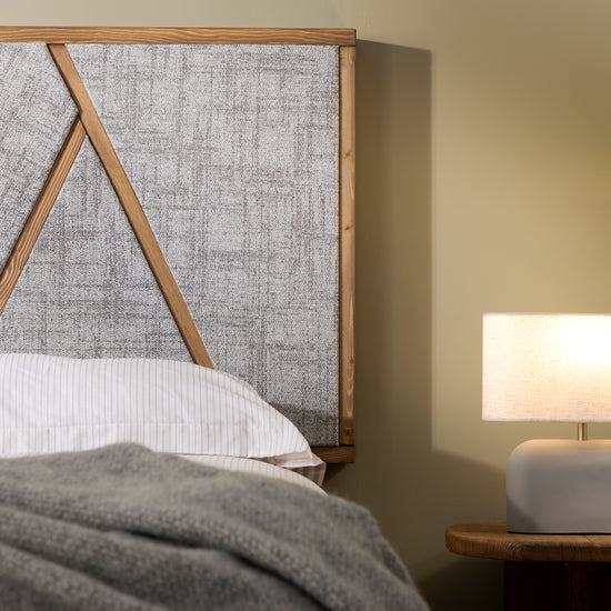The Bellingham headboard combines a bold geometric design with rustic charm. Its upholstered panel is crafted from textured fabric, adding warmth and natural character while maintaining a contemporary edge.