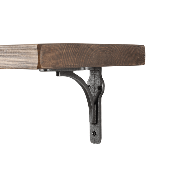 These metal shelf brackets are handmade in Yorkshire using the same traditional techniques that have been used for hundreds of years. Just like our shelves, these brackets are hand-waxed and handcrafted, meaning each piece has its own unique appearance and markings.