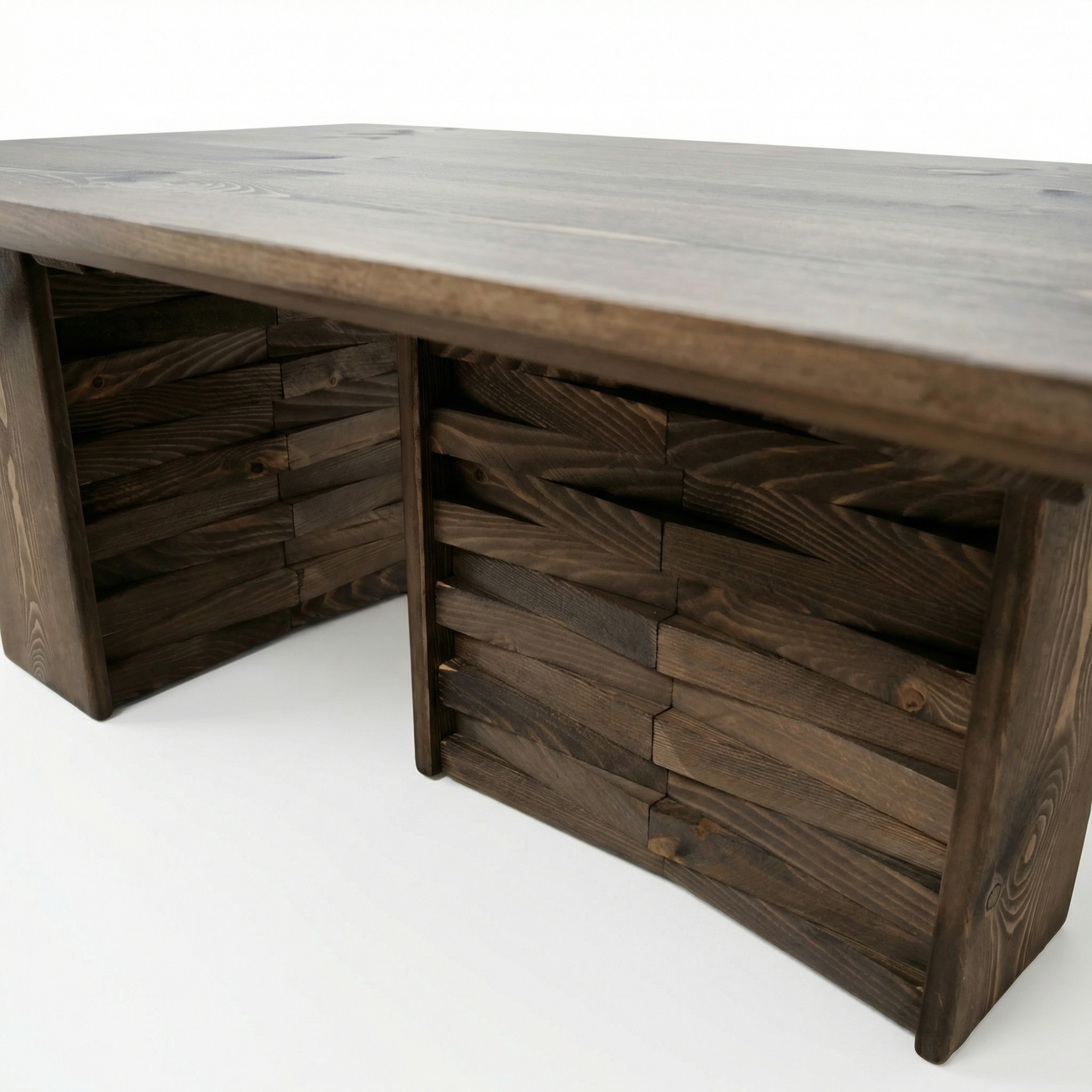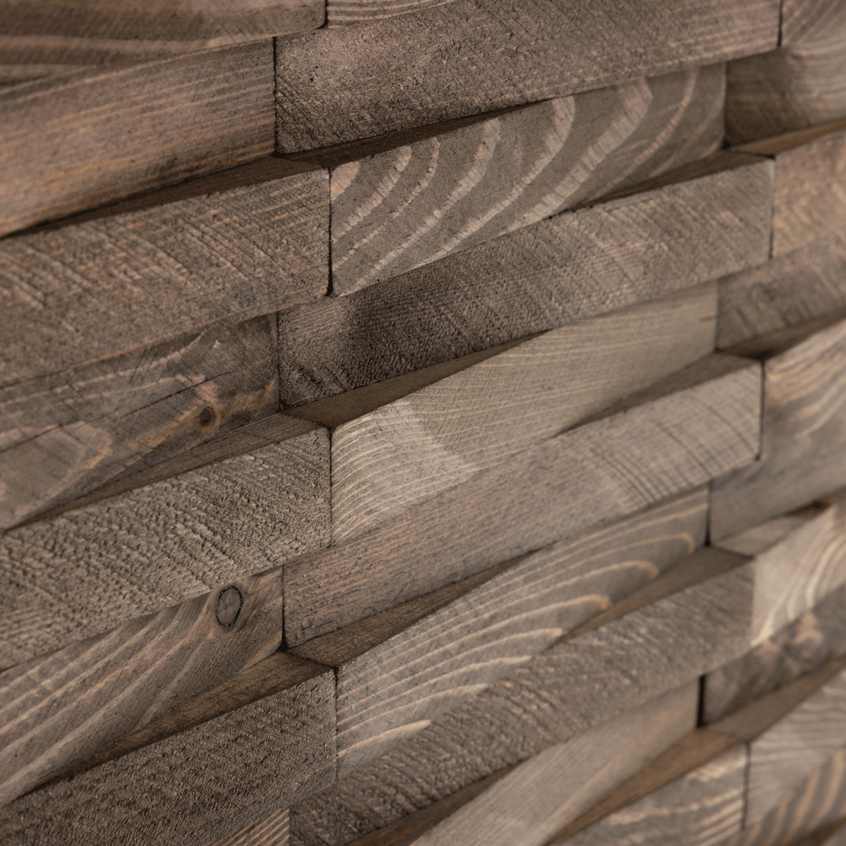 Crafted from solid hardwood, each column showcases a dimensional 3D relief formed from reclaimed wooden wedges sourced directly from our own workshop.