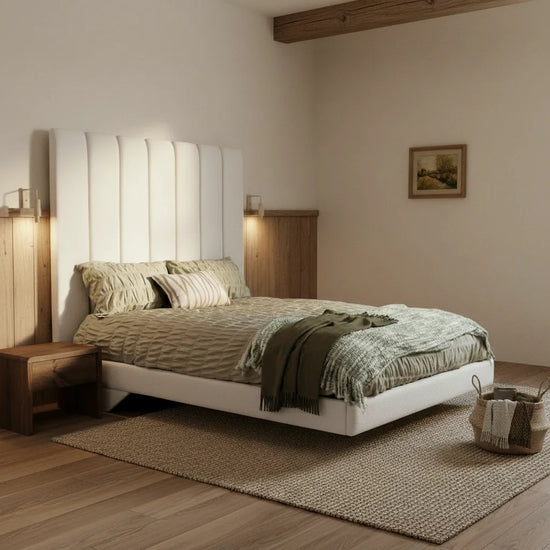 In Position One, the bed frame sits beneath the headboard, creating the illusion of a floating footboard. This setup gives a clean, contemporary look, ideal for minimalist or modern interiors.